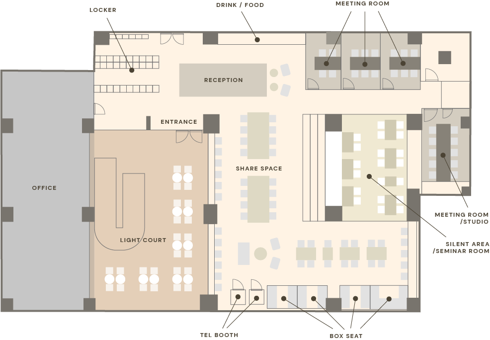 元々、渋谷でワークスペースを探していました。その際、内装や立地の居心地の良さや雰囲気を重視していました。そしてたまたまLULL TECH BEACHを知り、内見をした際、直感で”良い”と感じたため、オープン当初から使い続けています。ビーチをイメージした内装や、その日の気分や用途によって使い分けられるスペースがあるところが気に入っています。